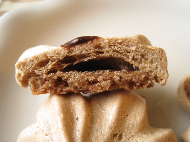Laut Rezept kommt in die Mitte eine Kaffeebohne. Diese habe ich nicht da gehabt (und ich bezweifle, ob mir so eine feste Bohne in der Mitte gefallen hätte), und so habe ich diese weggelassen.